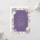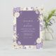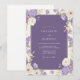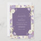 Delicate sprays of lilac and cream blossoms cascade around a regal purple backdrop. The artistic composition evokes a sense of ethereal romance and classic beauty for a memorable occasion.