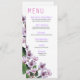 A gorgeous tea length menu of watercolor flowers from our "Lilac Branches" collection. Use the orange "Customize It" button above to insert your own text. There are several matching products available for this collection: wedding and reception invitations, dinner menus, bridal shower invites, RSVP cards, stickers, photo thank you cards, magnet favors and more. Want a different color or a new custom design? Available in white with lilac and chalkboard with lilac.
