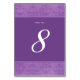 Lilac Damask table number card features horizontal damask borders against a lilac background. © Morning 6