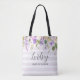 Lilac Floral and Stripes Maid of Honor Monogram Tote Bag