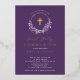 Beautiful Gold Foil First Communion invitations featuring a lavender lilac wreath and gold foil cross set on a deep purple background. Flip our invitation over to view a coordinating back for an extra special touch.