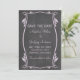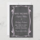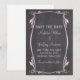 Elegant and trendy Flourish Chalkboard Save the Date Announcements featuring a chalkboard look background and a fancy swirl and leaf art deco border in purple. Easy to customize, simply add your wedding details. Click "Customize It" to find more personalization options.