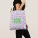 A tote bag built with a lilac flower pattern. Customize it with your own text, background color, among other options.