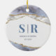 Lilac Geode Agate Couples Monogrammed Christmas Ceramic Ornament