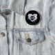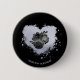 BLACK Background Romantic BUTTON with Lilac Iridescent Heart and Black Flowers. Great for Valentine Days.