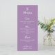 Add a touch of elegance to your dining experience with this beautifully designed menu in soft lilac and crisp white. Its delicate color combination creates a charming and sophisticated look, perfect for weddings, parties, or any special occasion. Simple, stylish, and visually pleasing, this menu brings beauty to your table while showcasing your offerings clearly and gracefully.