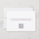 This Lilac Purple Floral Elegant Wedding RSVP Card showcases delicate flowers on a light purple background, complemented by contemporary typography. Guests can write in their names and dietary preferences, or they can use the QR code on the back to respond online. It is fully customizable with the couple's names and respond by date, as well as the QR Code and instructions on the back. The formal design and wording will add a touch of elegance to your wedding celebration. If you don't wish to use the QR Code, just delete the URL and instructions on the back.