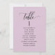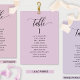 Help your guests find their table with this elegant modern lilac pastel purple seating plan cards with guests' names. Clear space all around giving you the liberty to use clips or punch holes for hanging displays, or use a table holder/frame. Double-sided cards so guests can look from both, front and back for their names. Lilac background and black text. Modern handwritten calligraphy details. Several color options are available. Have all table numbers in the same color or mix colors according to your event's color theme. Part of our "Joyful Floral" collection with a variety of coordinating products available, including table number cards and menus. Visit the collection by category on this product page or browse the entire collection in one glance at: https://www.zazzle.com/collections/joyful_pastel_floral_collection-119953493901910528