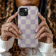 Trendy boho checkerboard print phone case in dusty lavender purple and ivory colors. Use the design tools to add your own monogram, name or other text, or change the background color to create a unique one of a kind device cover.