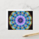 This kaleidoscope shows a pattern in lilac blue and purple, the glowing elements make it look like a candle behind a stain glass window