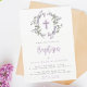 Lilac Wild Flower Wreath & Cross Baby Baptism Invitation