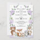 Lilac Woodland Animals Floral Wreath Baby Shower Invitation