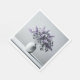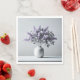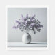 A contemporary vase is filled with lush purple lilac flowers and silver foliage elegantly arranged on a simple gray background