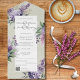 This elegant All-in-One wedding invitation is adorned with meticulously illustrated lilacs and heather sprigs, creating a botanical masterpiece. Lilacs symbolize love and happiness, while heather conveys good luck and admiration, making this design rich with meaningful symbolism. The All-in-One wedding invitations are both beautiful and practical by combining the wedding invitation with an easy to remove perforated RSVP postcard. They are also quick and easy to prepare for mailing. Simply address the invitation, fold the back flap and seal with the included clear stickers. Once your guests receive the pre-addressed invitation they simply tear off the perforated RSVP card and drop it in the mail. The addition of the QR code allows your guests to easily access your wedding website for information including reception details and dinner choices! Simply replace the sample URL with the URL from your wedding website.