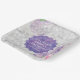 A cloud of lilac flowers in gray, lavender, and pink. A deep lavender watercolor badge with name of event or of the couple.