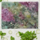 This is a porcelain painting of lilacs by B.A.Eberly that has been applied to a kitchen towel.