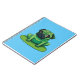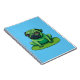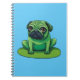 Cute green Pug resembling a frog sitting on a lilipad. Background colour can be changed.