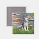 Water Lilies by Impressionist Claude Monet (1914), adapted to include a Alaskan Malamute. One of many water lily paintings, this one has red or bright pink lilies in the pond. It sold at auction in 2008 for over 70 million.