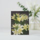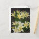 Creamy white lilies that seem to glow against a black background are featured on this product