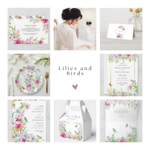 Wedding. Lilies and Birds WatercolorDesigned by Tatiana Mitrushova