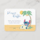 Make your baby shower even more fun with this adorable Lilo & Stitch Diaper Raffle insert card! Featuring Stitch in a playful tropical design, this card invites guests to bring a pack of diapers for a chance to win a special prize. Perfect for adding a touch of Disney magic to your baby shower while helping the parents-to-be stock up on essentials.