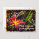 A slightly vintage looking photograph of a red and yellow day lily with drops of water on the petals and leaves. Customize the text if your wish.