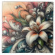 Lily Flower Design With Colorful Abstract Patterns Ceramic Tile