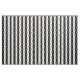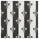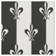 Black and white alternating stripe pattern with the fleur de lis, which is a simplified lily flower symbol used by French and European royalty, and a symbol of the town of New Orleans and the Mardi Gras festival in February after lent.