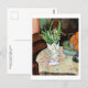 A fine art postcard with the painting, Bouquet of Lily of the Valley in a Vase (1931) by Suzanne Valadon (1865-1938), A still life depicting a grouping of lily flowers in a white ceramic vase next to a glass bowl of oranges.