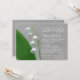 Plain white envelopes are included with paper invitations and will come to fit the invitation size you select. If you don’t need the envelopes, you may choose to not receive them by selecting the dropdown below "Envelopes" and choosing "None." If you’d like to have a design on your envelopes, you can browse all of these available envelopes to find the design that complements your Lily Of The Valley Wedding Invitations.