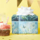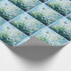 A beautiful gift wrapping paper, perfect for birthdays, graduations, and gifts to celebrate any occasion, featuring a gorgeous garden of blooming Lily of the Valley flowers with butterflies, all in shades of green and blue.