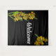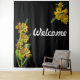 A captivating tapestry showcasing a cluster of golden lilies on a black background. The lilies' intricate details and rich colors create a stunning visual display. The simple addition of the word "Welcome" adds a personal touch to this decorative piece.