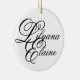 Lightweight, smooth, pure white ornament with nice sheen. Perfect size to be seen from across the room ... and to attract closer inspection! Price was great for ordering enough for the whole family! Clear, bold black design just as requested. Matches the order exactly. Just so nice!