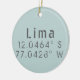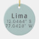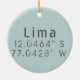 Lima Peru latitude and longitude map coordinates in modern urban font. Customize with personalized name/message on back