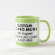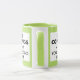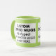 LIME GREEN 4:6 landscape aspect ratio double image frame custom Combo Mug for photo or logo, 11 oz., 3.2" diameter x 3.8" high, with LIME GREEN background double image frame (two individually customizable design areas) providing maximum coverage of the mug in LIME GREEN. See store for more templated font options. The background color has been chosen to closely resemble the combo mug inside and handle color but may not match exactly, due to the difference between printing and enamel tones.