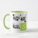 This modern design, in elegant lime green and white, has space for three square photographs and a lime green square with white text for your monogram. The featured black and white photo's are of 'Simba' the cute tabby cat waking from his sleep taken by the artist and designer, Karen McFarland. Simba would be more than happy for you to purchase the design as is if you think he's a cutie or know a cat lover.