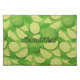 Lime slices and leaves. Seamless pattern. Custom background color. Custom text on each side.