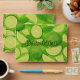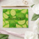 Lime slices and leaves. Seamless pattern. Custom background color. Custom text.