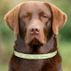 Good quality and fit is perfect for our Treeing Walker Coonhound/Beagle mix - about 45lbs and 15” neck. I wish it was pink all around (why I took off 1 star) but goid quality, printing! See above description - I added the flower to her collar in the photos