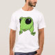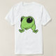 Playful lime frog cartoon with big eyes and cheeky smile. Bold, rounded shapes and bright colours suit kidswear, tees and accessories; ideal for cheerful, friendly campaigns.