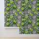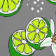 Stylish fruity peel and stick wallpaper featuring a colourful pattern of green citrus lime slices and pretty white flowers on a slate grey background. It's perfect for creating a feature wall in your kitchen or bar area