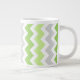 Elegant and modern chartreuse lime green, grey and white retro chevrons zigzags vintage stripes pattern jumbo coffee mug, fully customizable with your text or photo, create a truly unique coffee mug for your next coffee party.