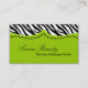 Lime Gree Zebra Print Animal Pattern Business Card