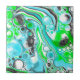 Sea foam blue ands lime green, black and white swirls and bubbles marble fluid art tile,