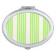 Lime green and beige five stripes pattern compact mirror