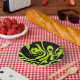 Lime green and black swirled together to create a retro marble design that is cool and edgy.