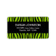 A trendy lime green and black zebra print return address label.