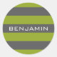 Lime Green and Gray Rugby Stripes with Custom Name Classic Round Sticker