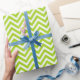 This wrapping paper is designed in lime green and white colors with chevron pattern.