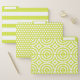 Beautiful and chic set of file folders in lime green horizontal stripes, polka dots and geometric patterns. Customize each folder with the included gold foil label stickers. Work in style! Perfect for home, office, or home office!